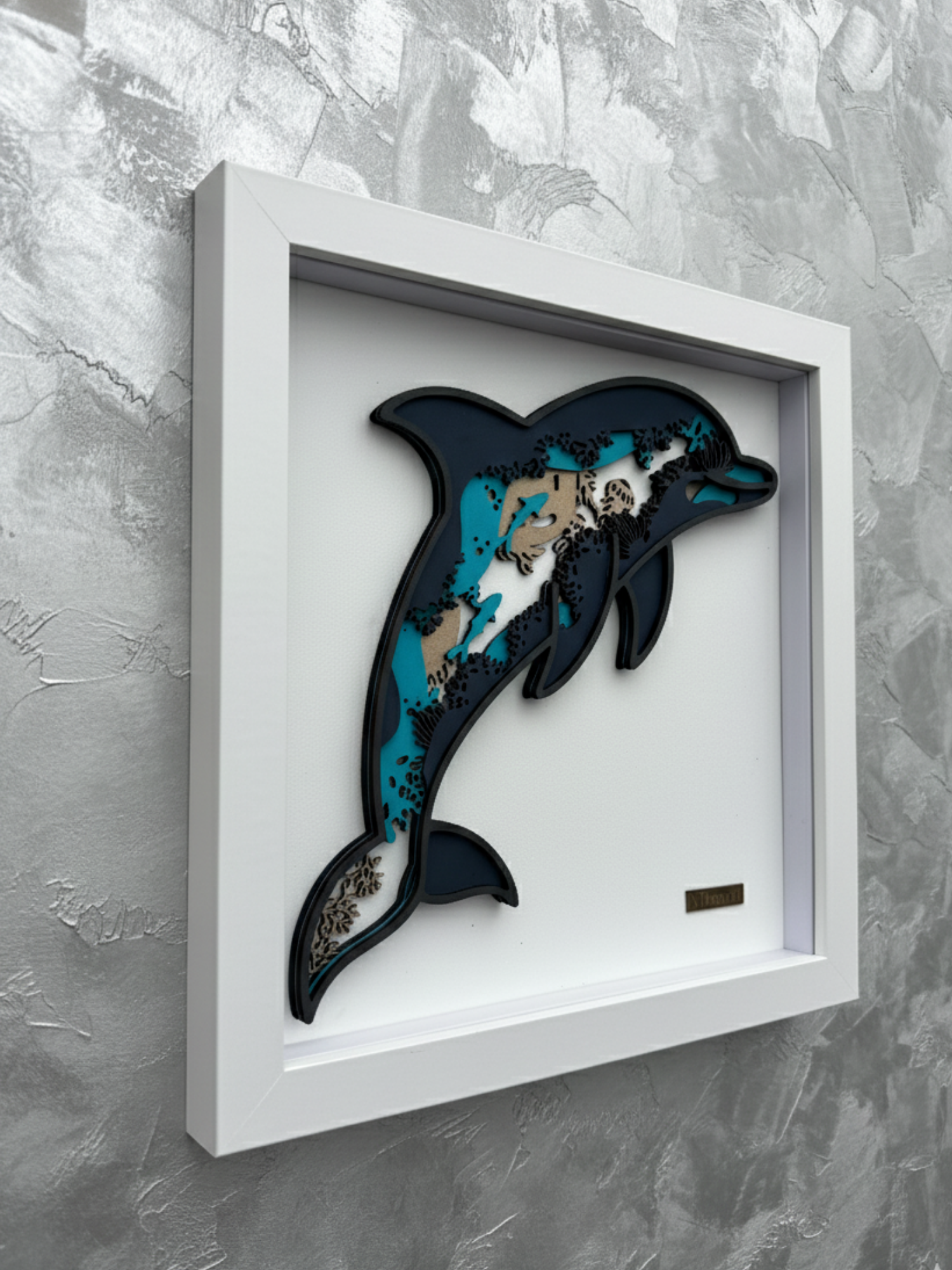 Crafted with intricate precision and hand-painted detail, this artwork radiates a vibrant energy that seems to flow and shift like the tides themselves. It’s more than a piece of art — it’s a portal into the mystery of the deep, where dolphins glide through realms of colour, harmony, and quiet wonder.